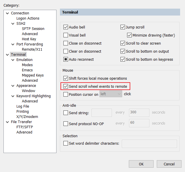 - 勾选“Send scroll wheel events to remote”;